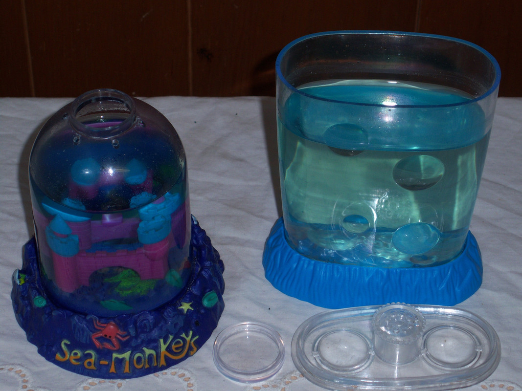 The other female in the Blue ocean zoo was found dead, Bertha is still going strong. There was only one live sea-monkey in the magic castle tank. The green ocen zoo was devoid of life and the red zoo had one lone survivor. They were all transferred to the Mars tank tonight. The Mars tank was then aerated and growth food was added. The blue ocean zoo and the magic castle tank are now set aside to allow all the water to evaporate from them.