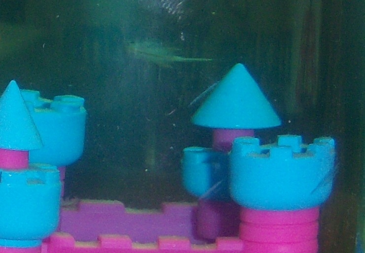 New Castle - One adult female and one adult male. Hatchlings are seen but never mature. I fed them Red Magic. Check out the close-up shot of the adult female swimming around the castle.